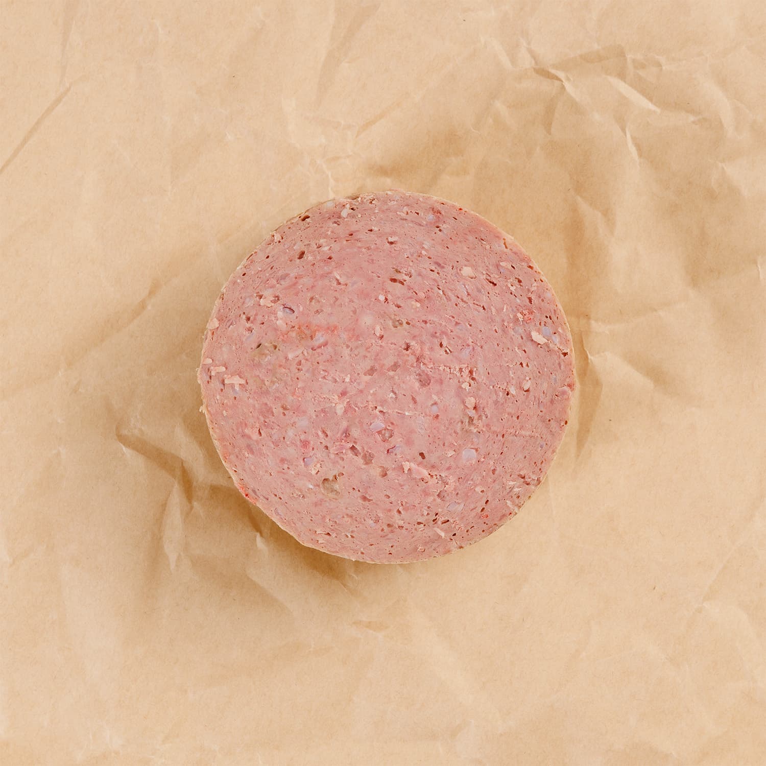 100% pure select chicken, chicken bone and cartilage mix finely minced with a small amount of controlled garlic and slow cooked in a sous-vide bath for 5 hours. This will tempt the fussiest of eaters. Suitable for dogs of all life stages including puppies. May suit dogs suffering from food allergies and pancreatic problems through fat intolerance.