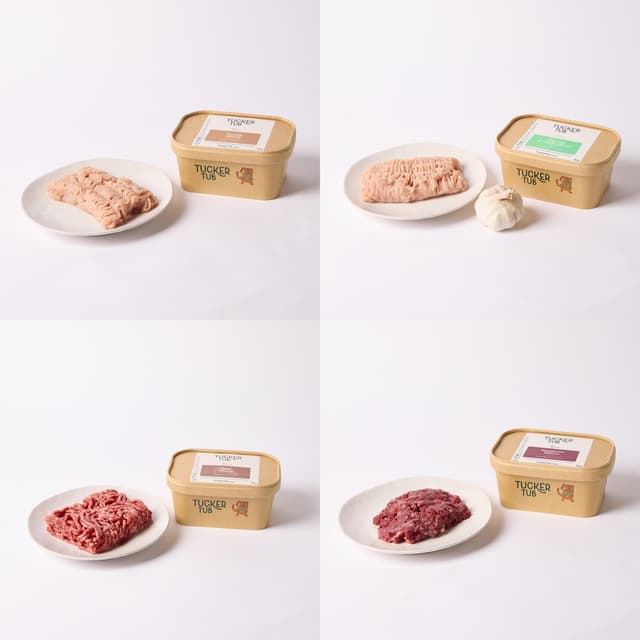 Tucker Tub Raw Chicken & Garlic Mince, 1kg Tucker Tub Raw Beef Mince, 1kg Tucker Tub Raw Kangaroo Mince, 1kg Tucker Tub Raw Turkey Mince, 1kg Tucker Tub Raw Rabbit & Beef Mince, 1kg